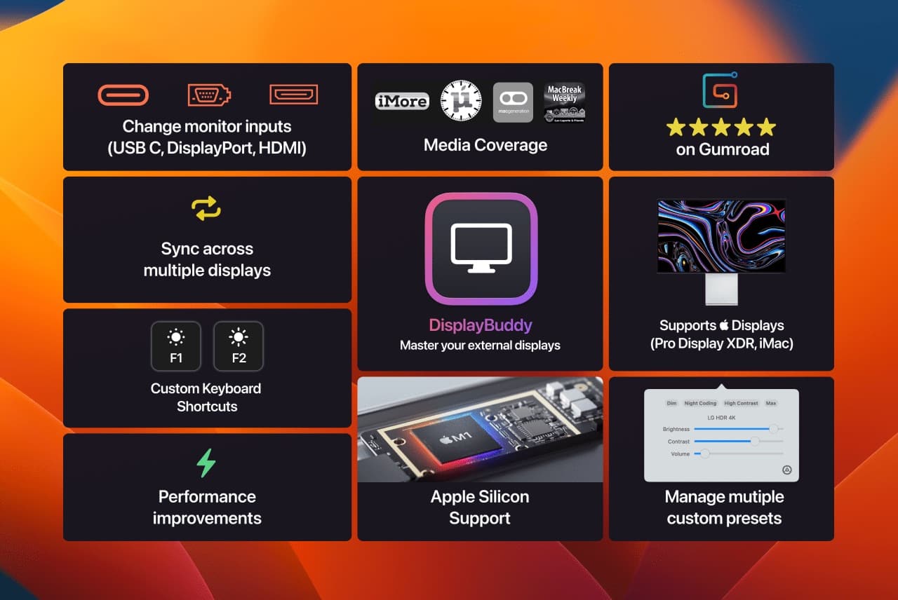 DisplayBuddy brings full DDC display control to M1 Macs for the first time